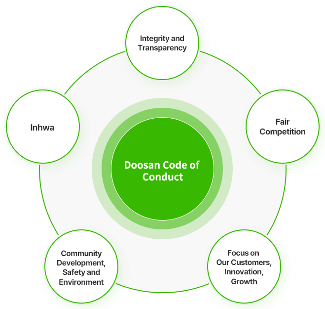 Doosan has been cultivating an ethical corporate culture by putting into practice the company’s core values, such as honesty, transparency, and fairness throughout all its operations. While working towards the goal of ethical management, Doosan has been establishing a strong corporate-wide system aimed at preventing ethical violations and has been doing its best to prevent unethical behavior and corruption from occurring in our supply chain by adopting a systematic ethical management system.